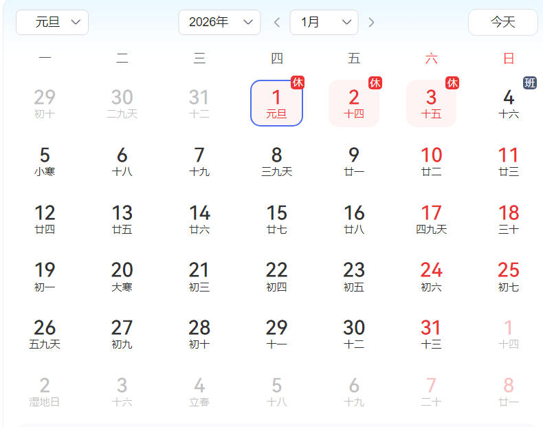 2026年元旦放假安排